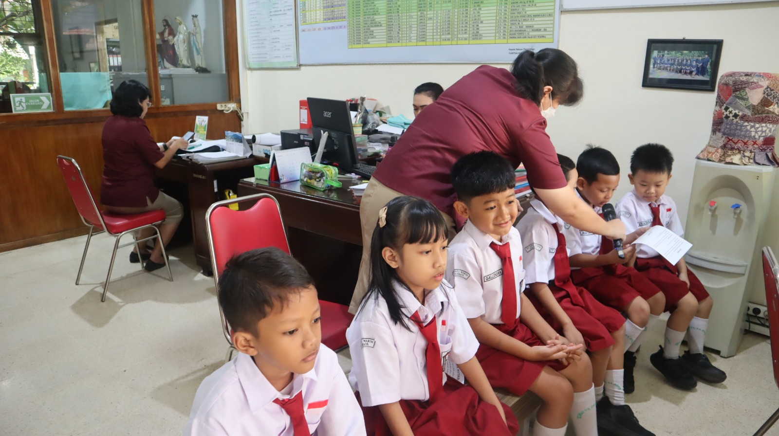 Dengan pendampingan guru dan wali kelas, anak-anak kelas 1 tampil penuh semangat sebagai pembawa lilin, pembaca doa, pemimpin lagu, hingga petugas tata tertib sederhana. Meskipun masih sangat muda, mereka menunjukkan keberanian dan rasa percaya diri yang luar biasa.