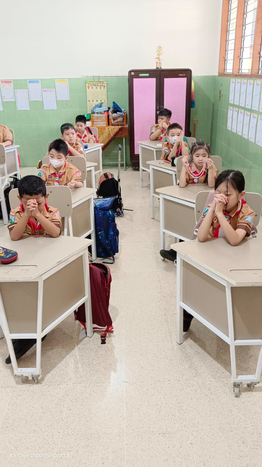 Surabaya, Kampus Ursulin - Sanmaris, Dalam suasana yang tenang dan penuh doa, SD Santa Maria Surabaya mengadakan ibadat penutupan Bulan Rosario pada Jumat, 31 Oktober 2025, di ruang kelas masing-masing. Kegiatan ini diikuti oleh seluruh siswa dan semua Bapak/Ibu guru.