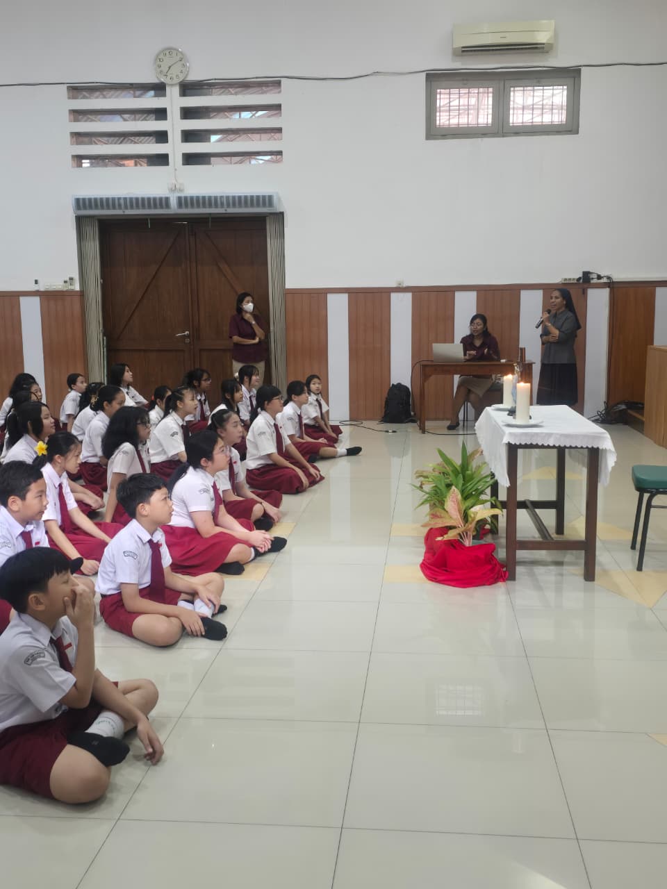 Surabaya, Kampus Ursulin – Sanmaris. Dalam rangka mempersiapkan diri menghadapi ujian akhir, siswa kelas 6 SD Santa Maria Surabaya mengikuti kegiatan ibadat bersama yang berlangsung khidmat dan penuh makna. Kegiatan ini menjadi salah satu bentuk pendampingan rohani agar siswa tidak hanya siap secara akademik, tetapi juga secara mental dan spiritual.