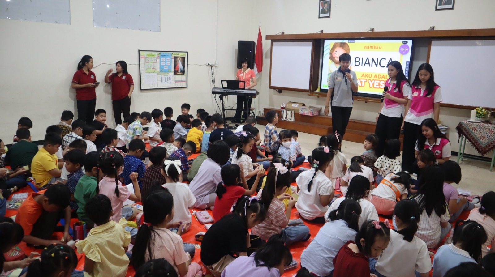 Kegiatan rekoleksi berlangsung dengan suasana yang hangat, penuh sukacita, dan reflektif. Para fasilitator dari CFM Young Generation Surabaya membimbing siswa melalui berbagai sesi menarik, seperti ice breaking, dinamika kelompok, cerita inspiratif, serta refleksi iman yang disampaikan dengan bahasa yang mudah dipahami oleh anak-anak.